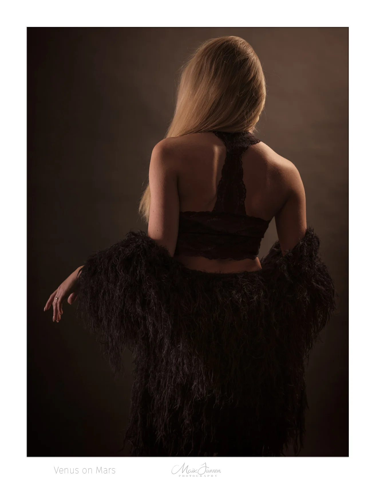 Het portret van Venus op Mars is ook zo ontstaan. Mijn tip hierbij is om de instellichten op je flitsers te gebruiken om te zien waar het licht terecht komt. Maak het shot, kijk naar het effect van elke flitser en pas deze aan. Vergeet niet ook je klant aan te sturen. Een beetje zus draaien, of een beetje zo maakt dat het licht nét goed valt.