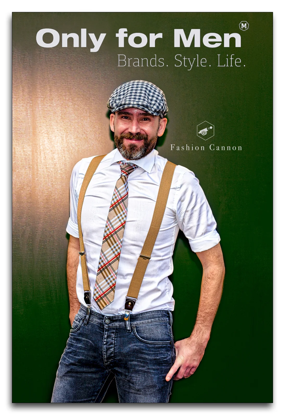 Zo ben je bezig met een journalistieke reportage van de Dickens Dag Druten, zo zie je tóch even kans een fashion-plaat te maken. Tijdens mijn tochtje over de Hogestraat liep ik namelijk langs de Only for Men en kon het niet laten even snel een blik naar binnen te werpen. En daar stond hij. Met zijn baardje. En zijn bretels. Ik zwaaide, hij zwaaide terug. We hadden elkaar eerder kort ontmoet toen ik in deze winkel wat modieuze overhemden kocht. "Kom, dan ga ik jou even op de foto zetten", riep ik, "je ziet er weer fantastisch uit!". O ja, goed hoor.